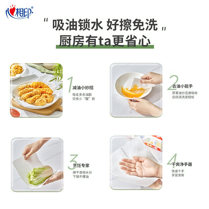 心相印抽纸/厨房用纸【肖战推荐】70抽*3包 加厚吸油锁水 食品接触级