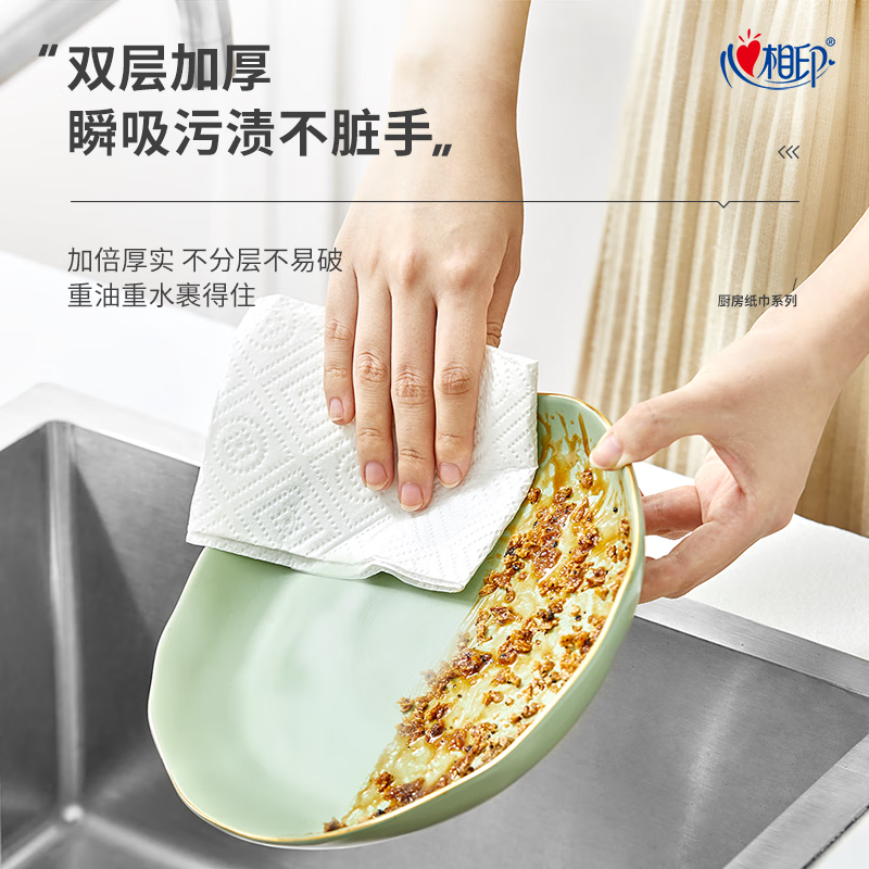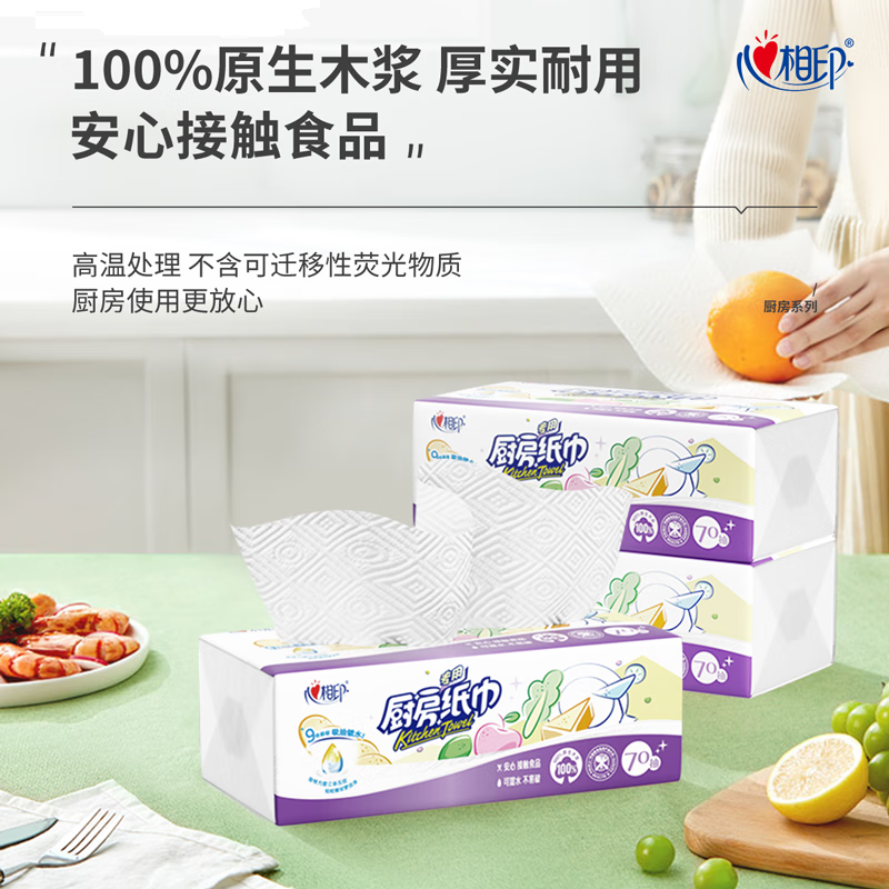 心相印厨房用纸70抽*8包 吸油吸水纸巾 食品接触级