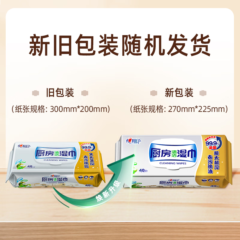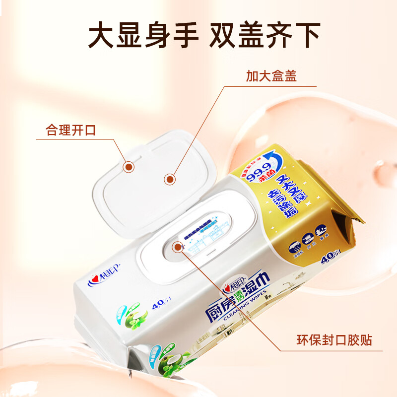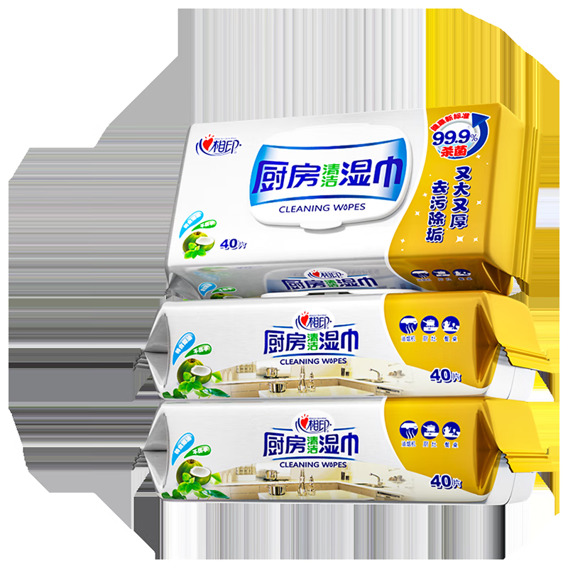 心相印厨房湿巾 40抽*3包 金装去污去油厨房专用湿纸巾 新老包装随机发