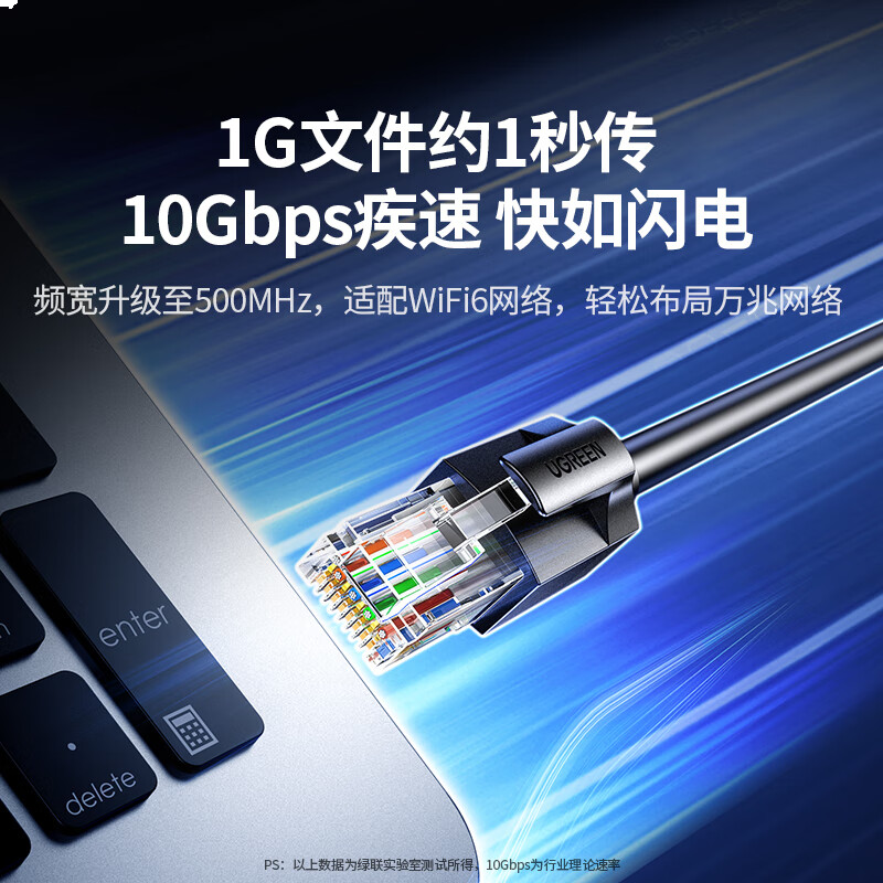 绿联超六类网线 CAT6A类万兆成品网线5米 家用电脑网络宽带工程跳线8芯双绞连接线 黑色55159