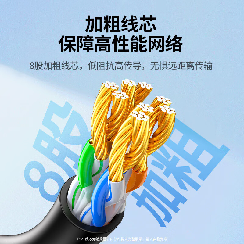 绿联 六类网线 千兆高速网络宽带线 6类家用电脑笔记本路由器监控线 CAT6八芯成品跳线黑色30米20168