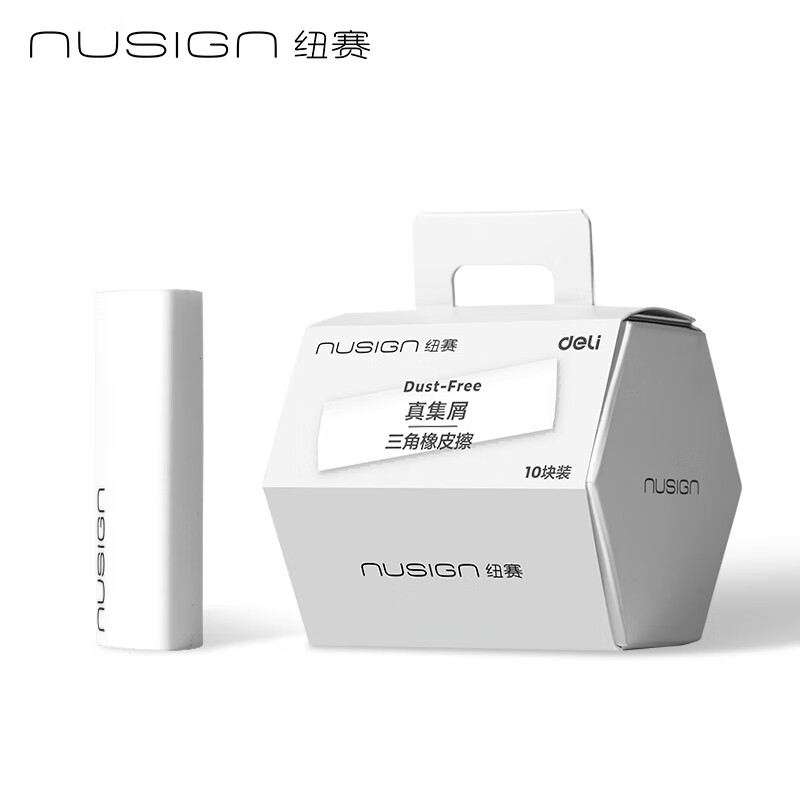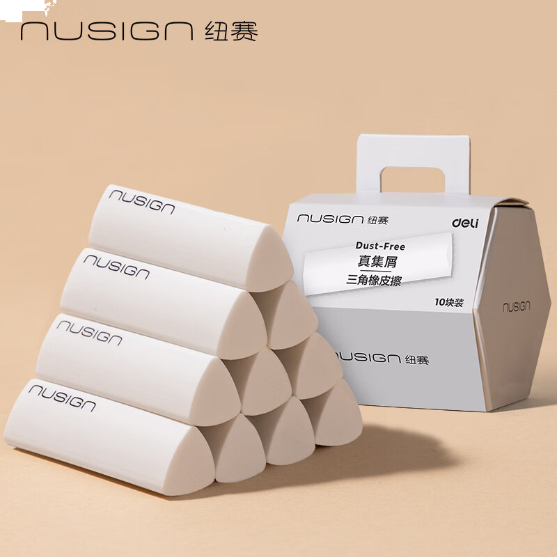 得力(deli)纽赛集屑三角橡皮擦小学生专用擦字成线干净不留痕儿童素描美术橡皮 10块装NS151-10