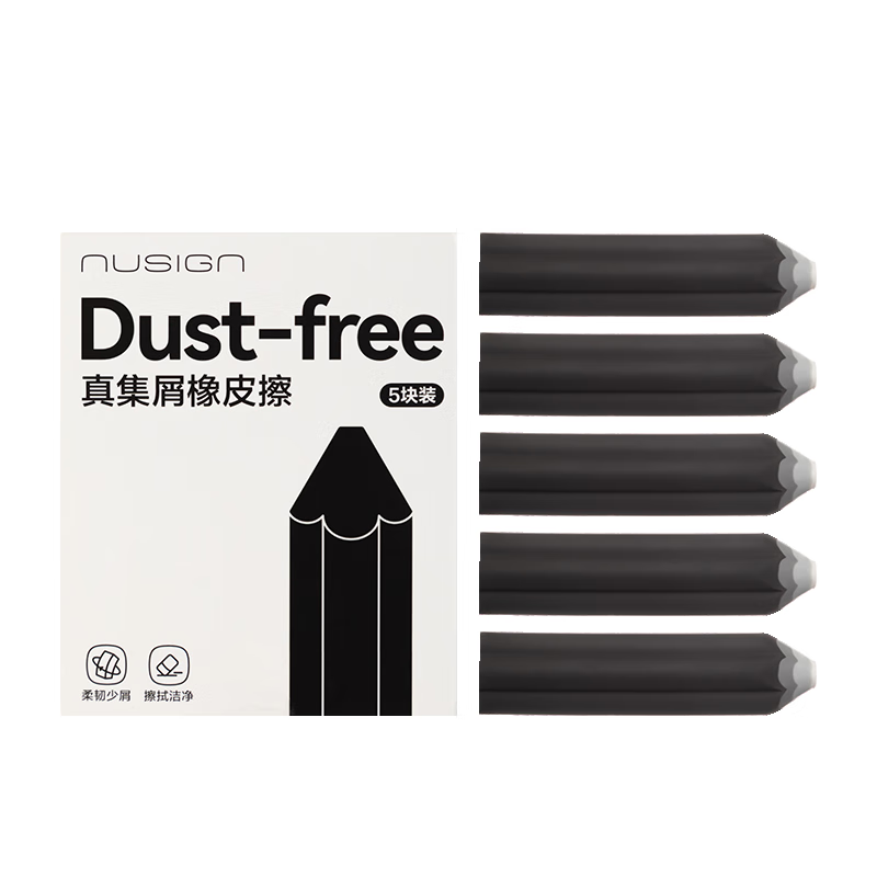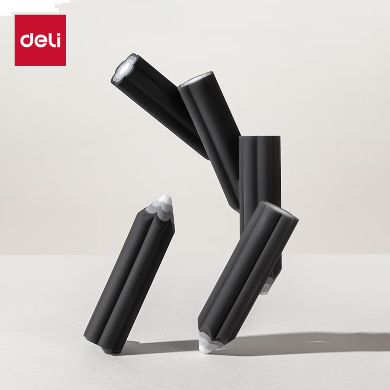 得力(deli)易握铅笔造型黑色5块装橡皮擦 真集屑不留痕高颜值精致包装学生暑期文具必备NS783