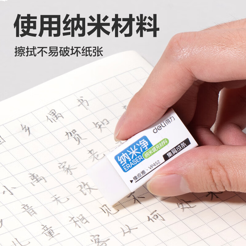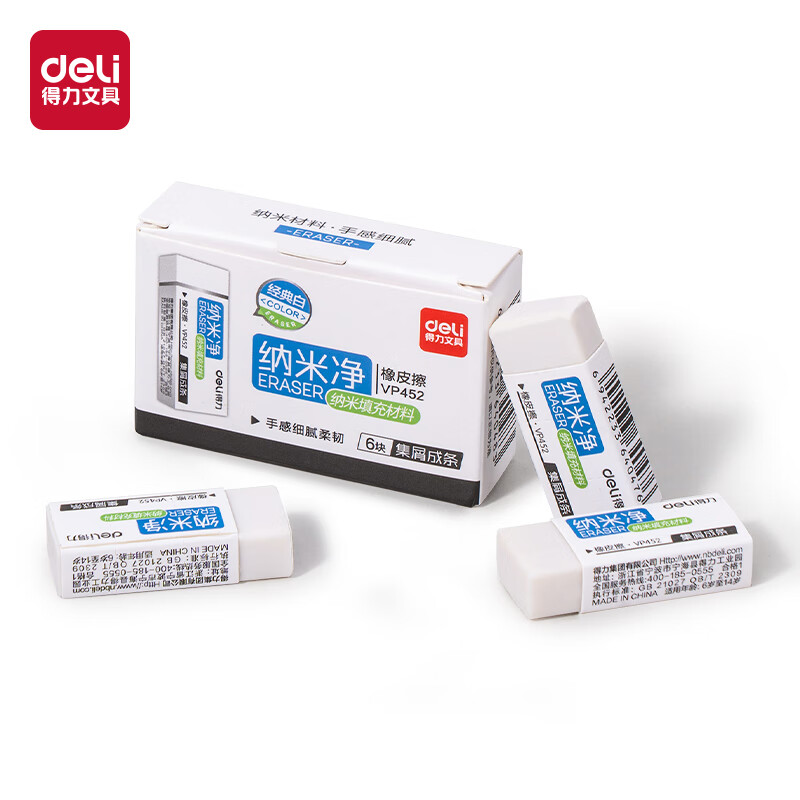 得力(deli)纳米净小号橡皮擦 擦不留痕考试美术素描橡皮擦 6块装 颜色随机VP452