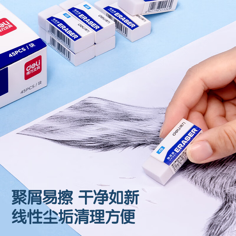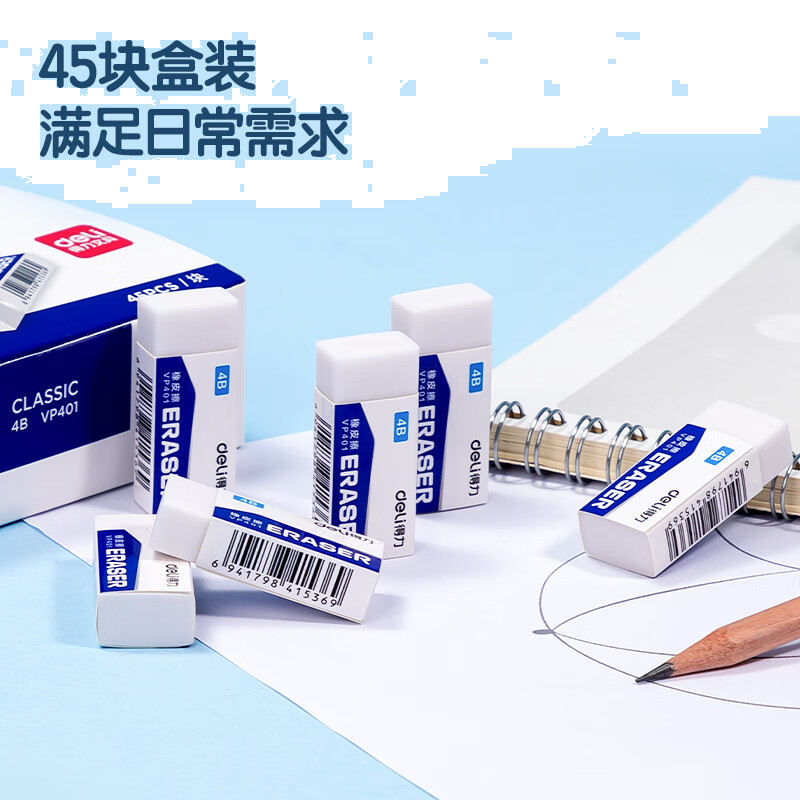 得力(deli)45块4B橡皮擦自动铅笔 白色易擦少屑学生中考高考开学考试文具美术绘图橡皮 小号