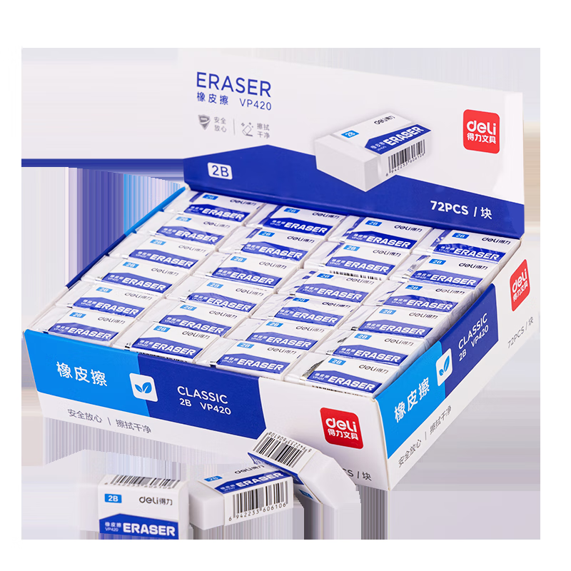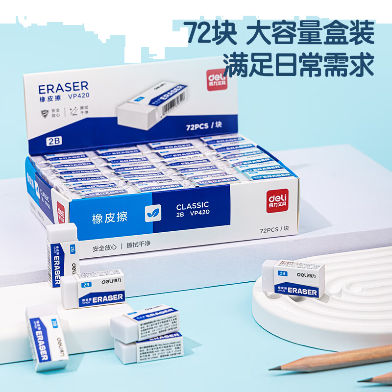 得力(deli)72块2B橡皮擦自动铅笔 白色易擦少屑学生中考高考开学考试文具美术绘图橡皮 小号