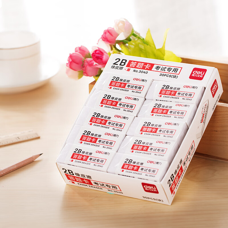 得力(deli)30块2B橡皮擦答题卡适用考试橡皮 擦不留痕小学生开学文具 大号