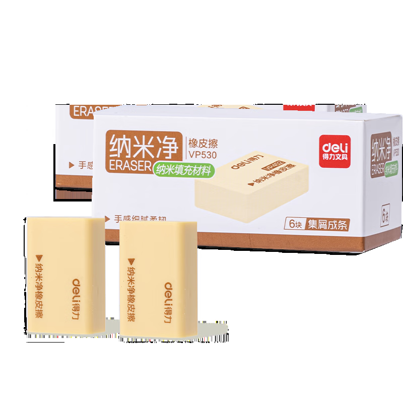 得力(deli)6块升级款强擦拭纳米净黄橡皮 集屑成条擦拭干净 聚屑成条 纳米填充材料
