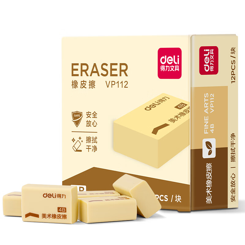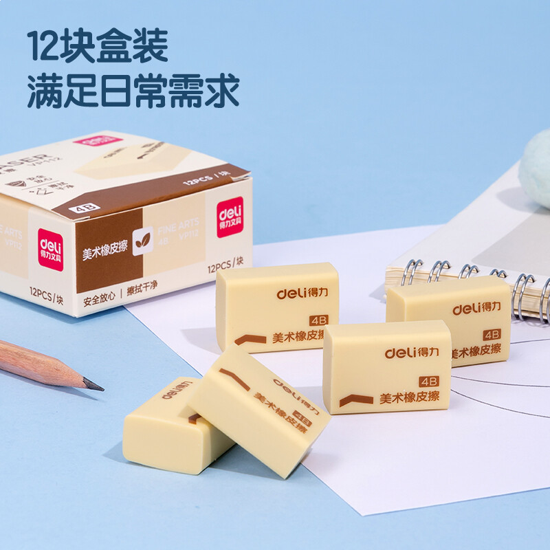 得力(deli)12块4B自动铅笔橡皮擦 美术中考高考绘图橡皮柔软易擦少屑学生开学文具礼物