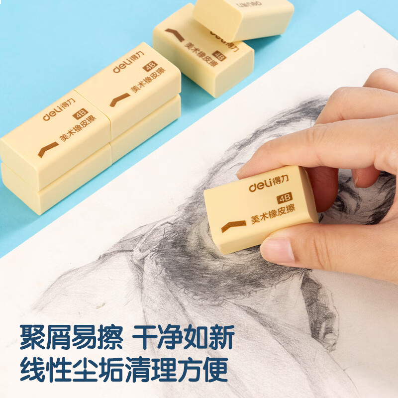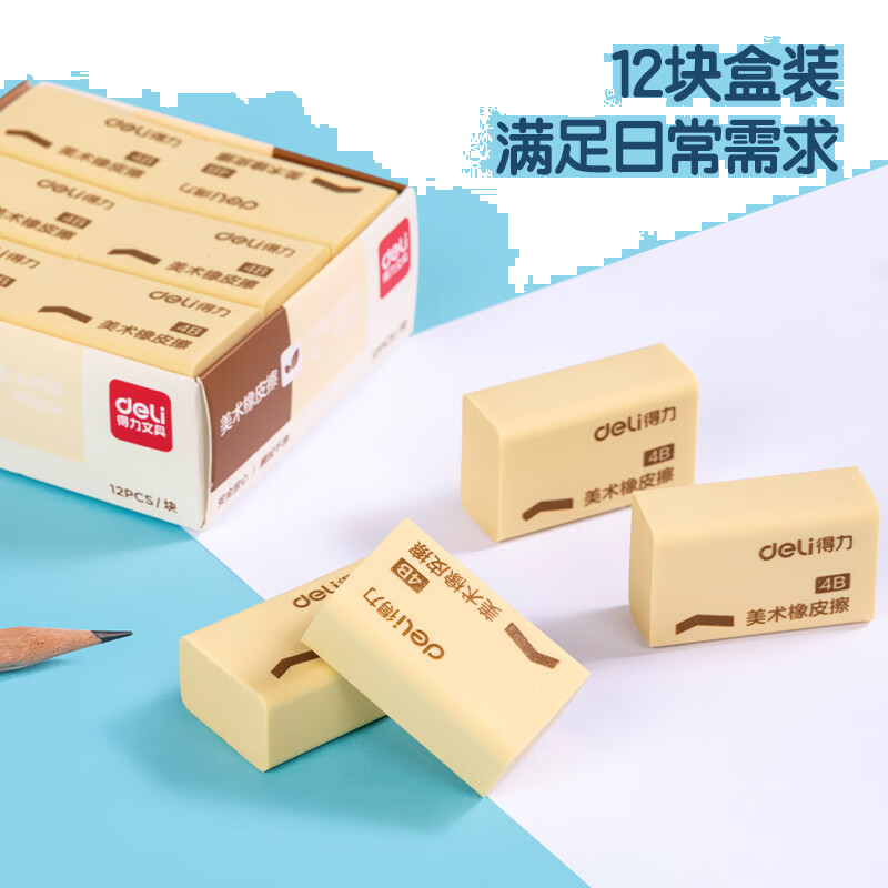 得力(deli)橡皮擦4B 适用活动铅笔 12块大号装 中考高考学生学习用品 黄色 考试美术绘图橡皮开学文具