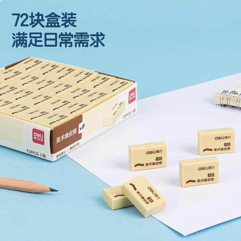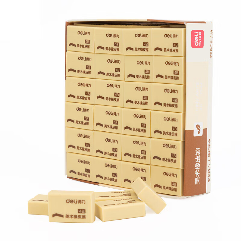 得力(deli)4B橡皮擦 中考高考文具干净易擦少屑学生学习考试美术绘画办公橡皮擦 黄色72块实惠装
