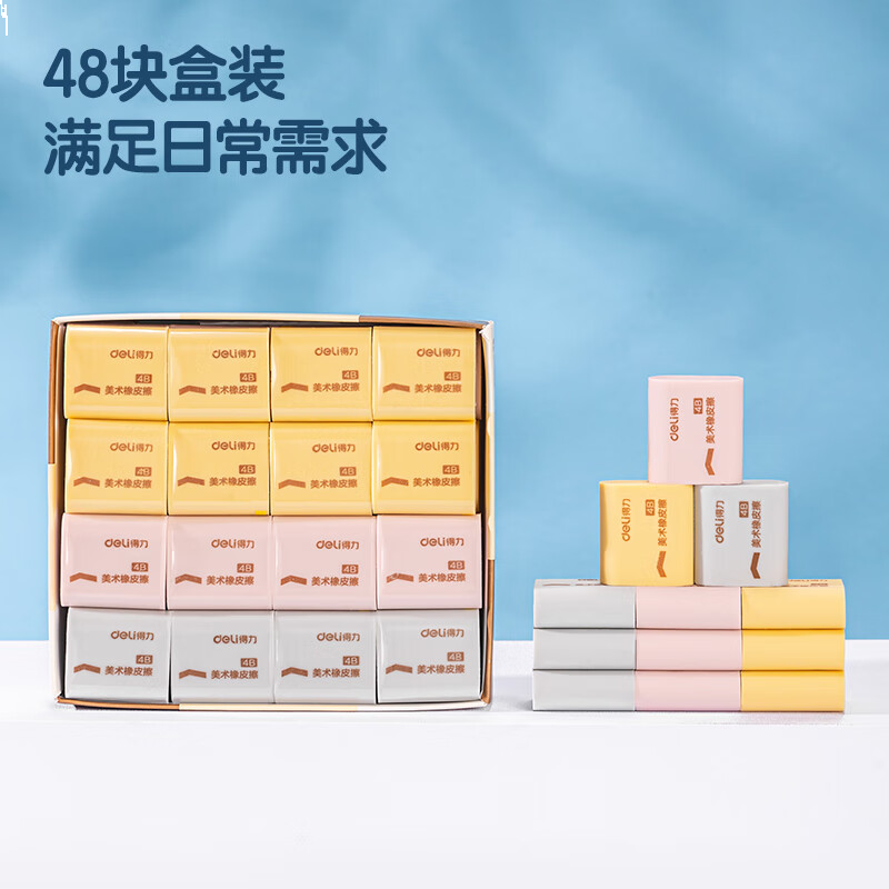 得力(deli)48块柔软学生中考高考橡皮擦 考试文具多彩绘画橡皮开学礼物