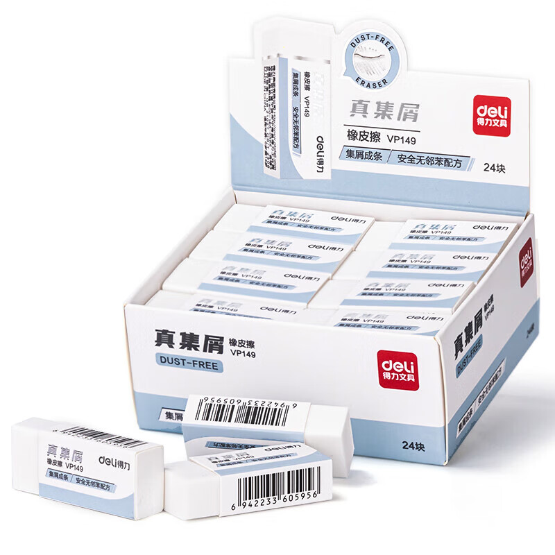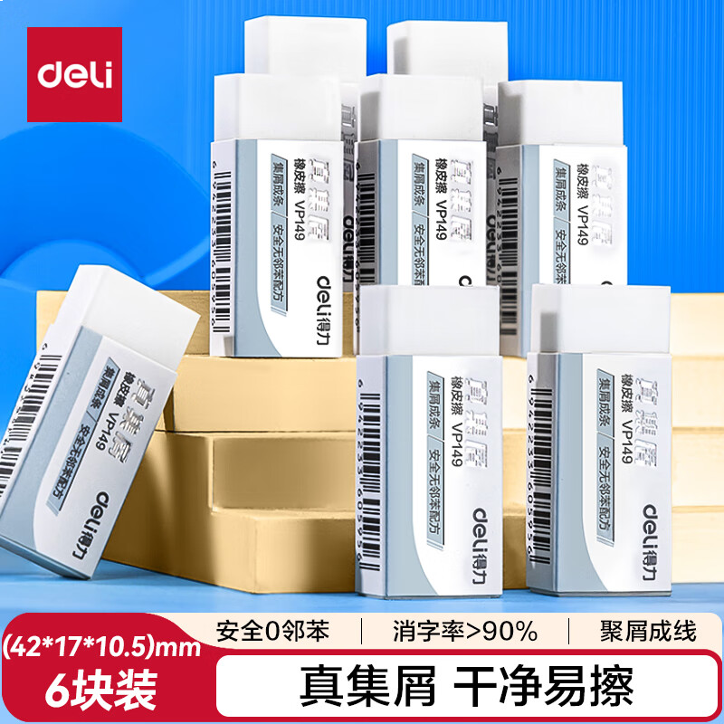 得力(deli)真集屑橡皮擦 聚干净 易擦安全无邻苯橡皮 学生高考中考美术素描橡皮小号6块