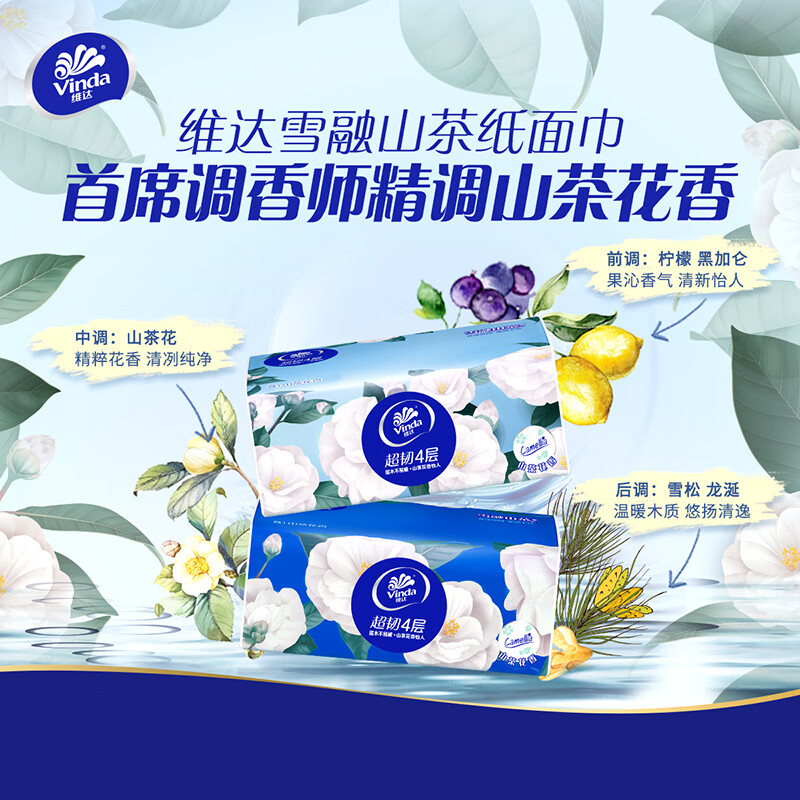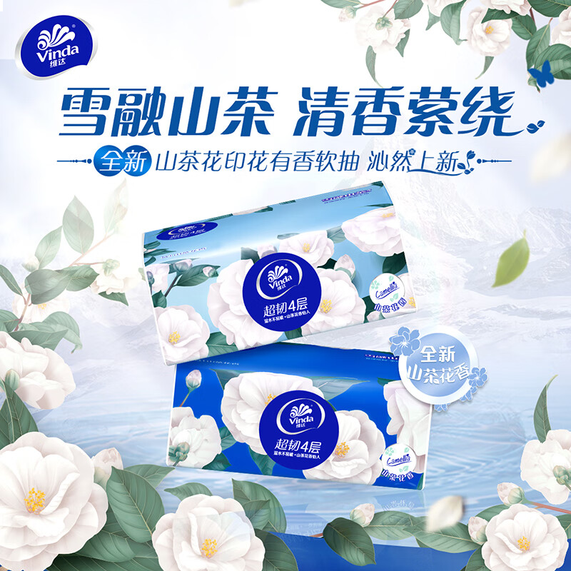 维达(Vinda)抽纸 超韧4层90抽*20包S码 山茶花印花纸巾 有香无香随机发 整箱