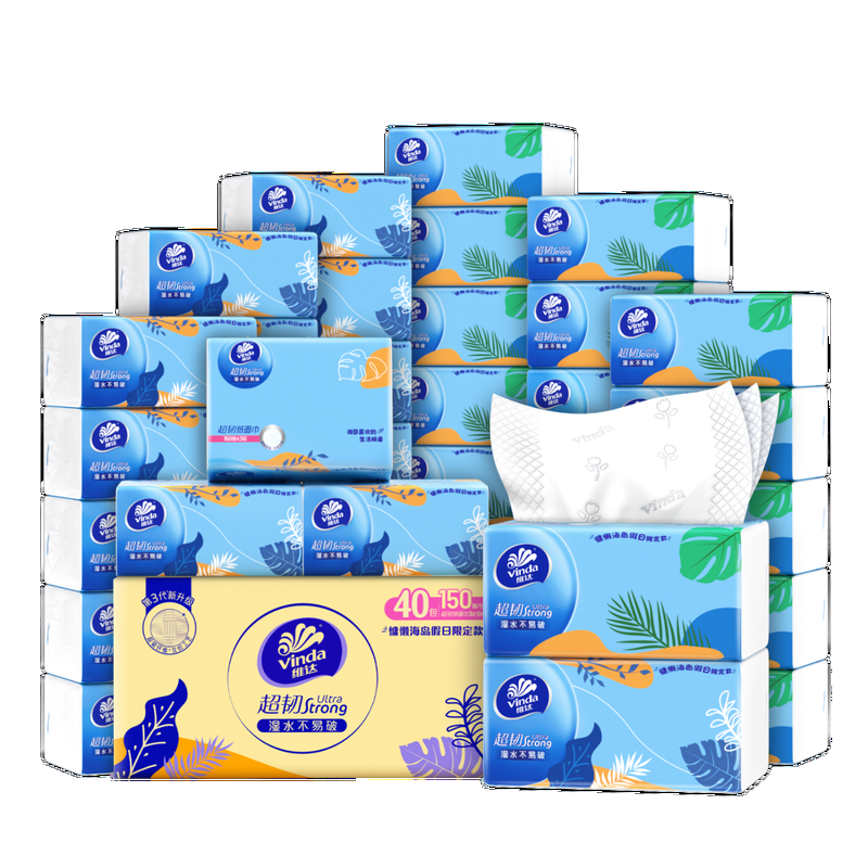 维达(Vinda)抽纸【孙颖莎推荐】超韧3层150抽*40包S码 卫生纸纸巾餐巾纸整箱