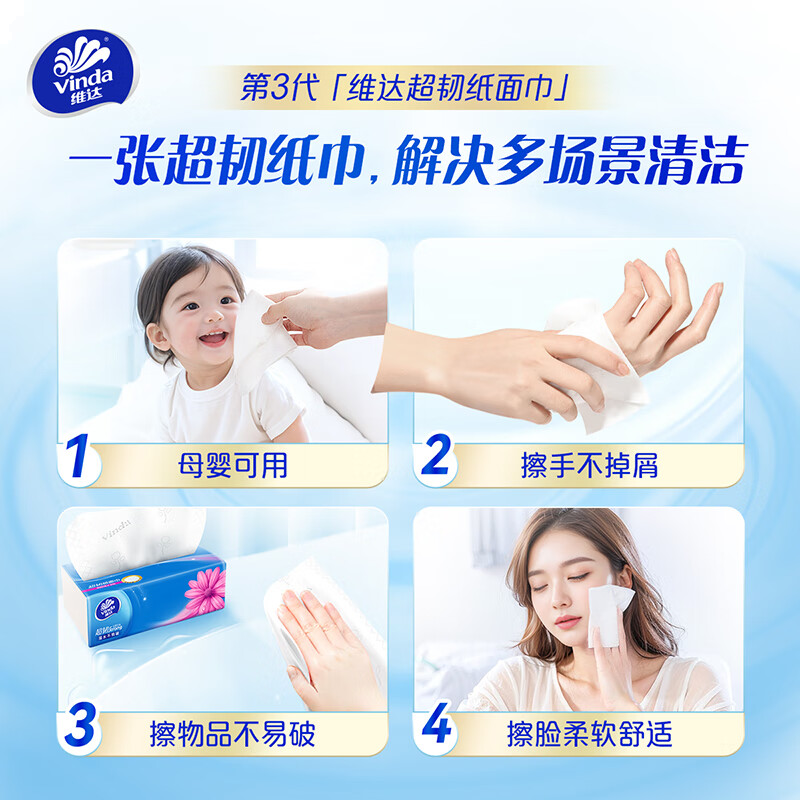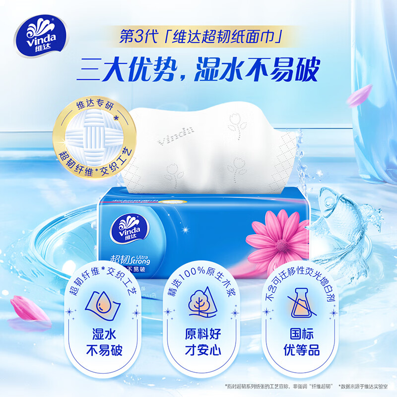 维达(Vinda)抽纸【孙颖莎推荐】超韧3层100抽*30包S码 纸巾卫生纸 餐巾纸整箱
