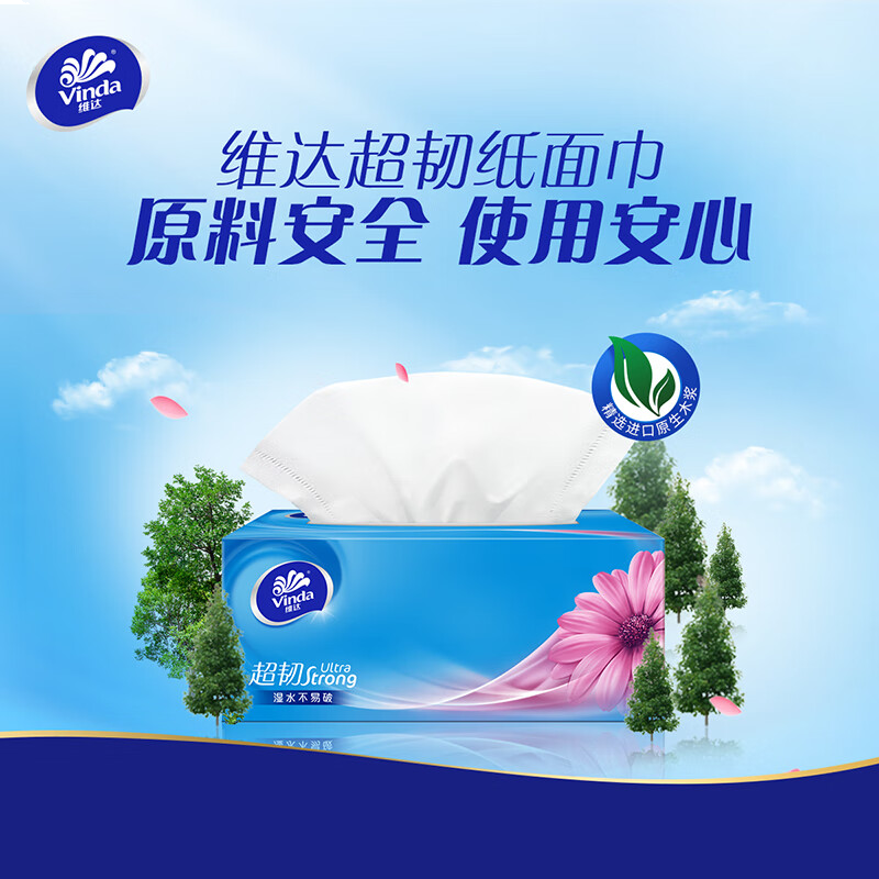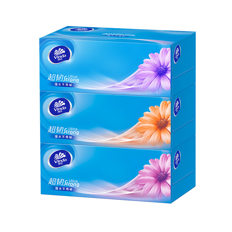 维达(Vinda)抽纸 超韧3层130抽*3包L码 湿水不易破 盒抽 卫生纸 纸巾 餐巾纸