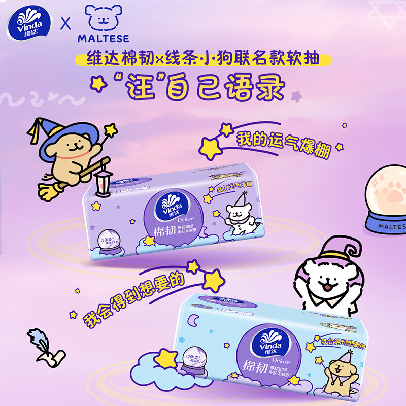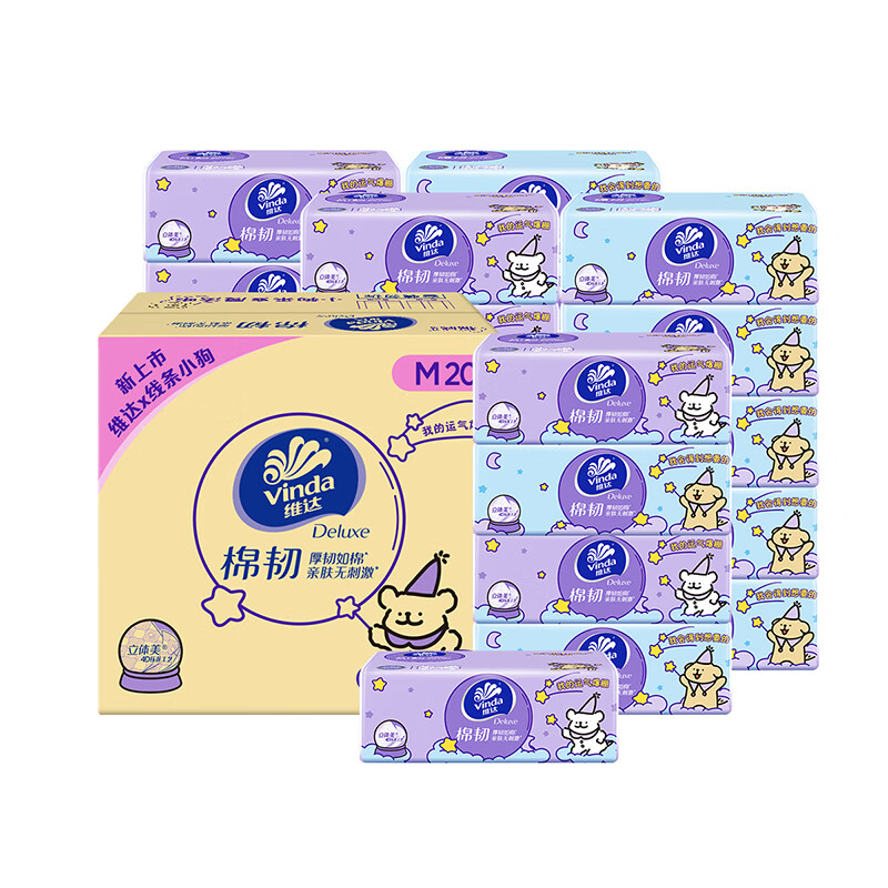 维达(Vinda)抽纸 棉韧3层100抽*20包M码 线条小狗联名 纸巾卫生纸 整箱