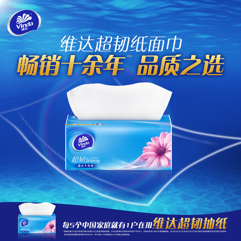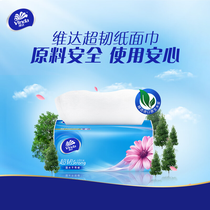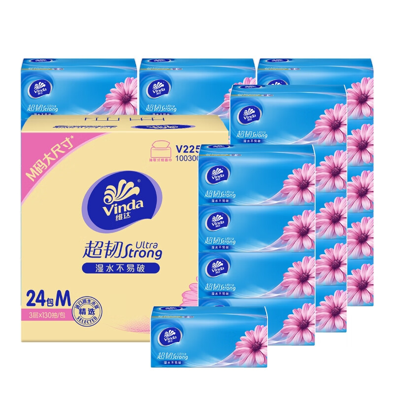 维达(Vinda)抽纸 超韧3层130抽*24包M码 湿水不易破 卫生纸 纸巾 餐巾纸 整箱