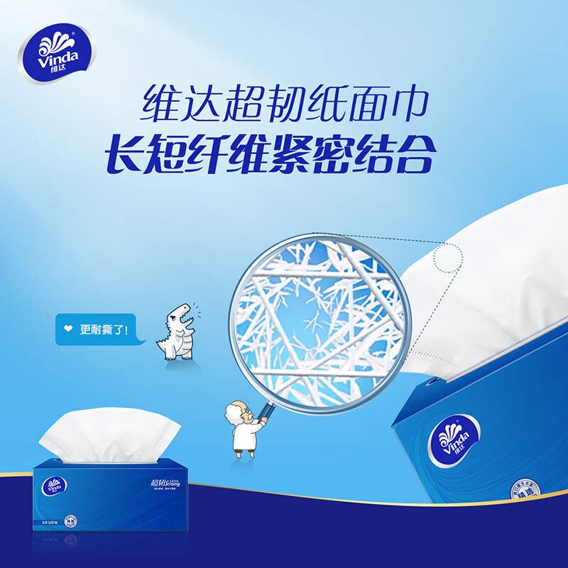 维达(Vinda)抽纸 超韧3层100抽*3包M码 湿水不易破 盒抽 卫生纸 纸巾 餐巾纸