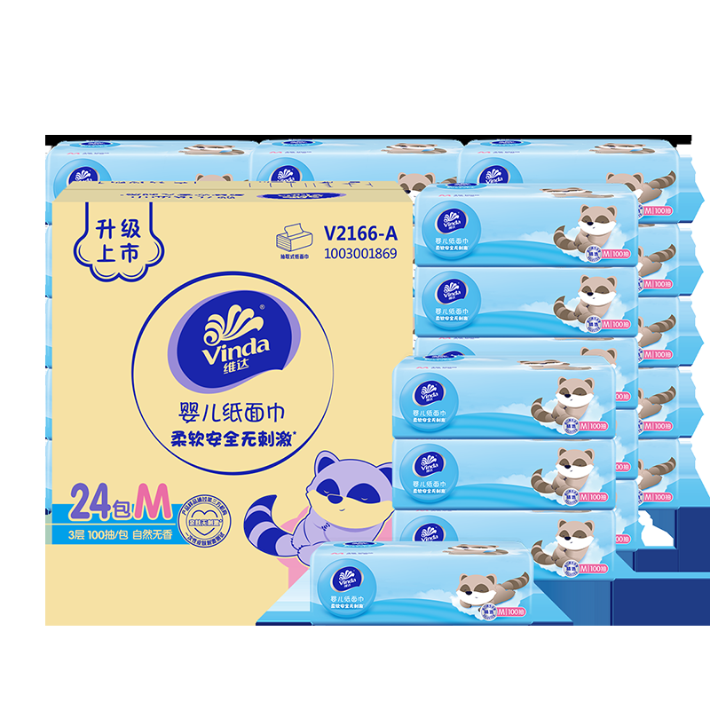 维达(Vinda)婴儿抽纸 3层100抽*24包M码 母婴可用 宝宝纸巾 整箱
