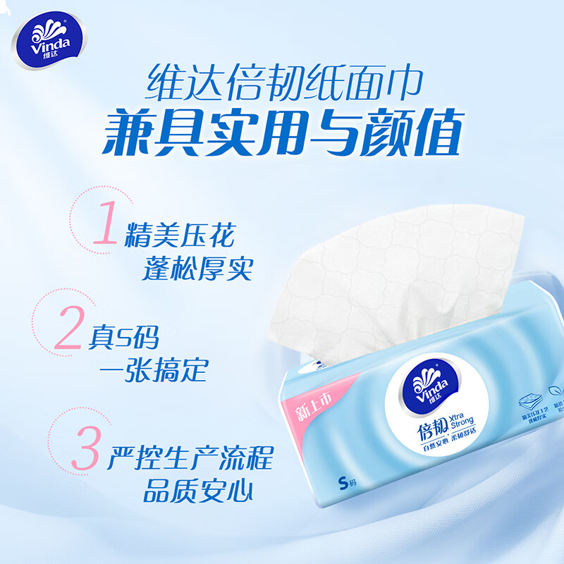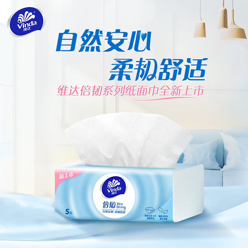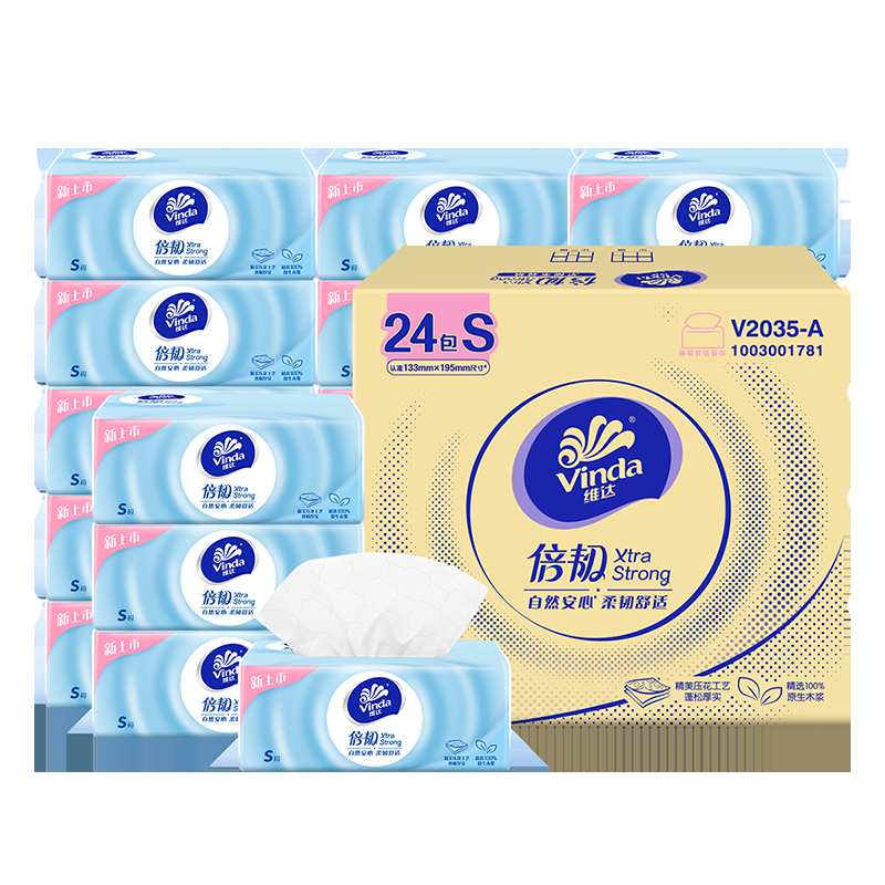 维达(Vinda)抽纸 倍韧3层90抽*24包S码 柔韧舒适 餐巾纸纸巾 纸抽卫生纸 整箱