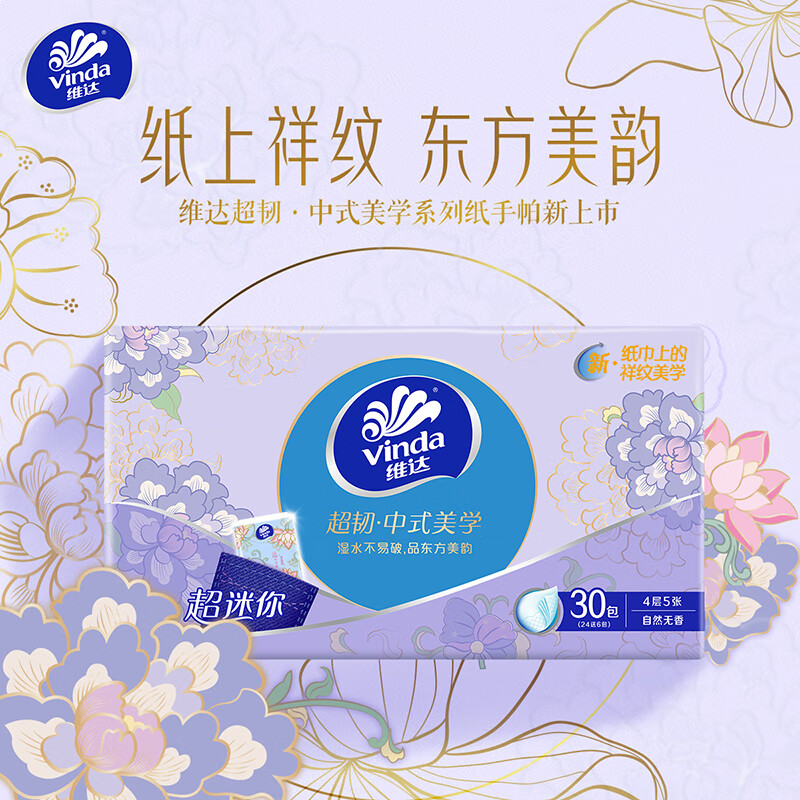 维达(Vinda)超韧手帕纸4层5张*30包 中式美学手帕纸 航天兔包装新旧交替