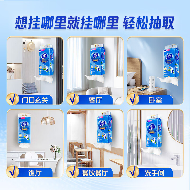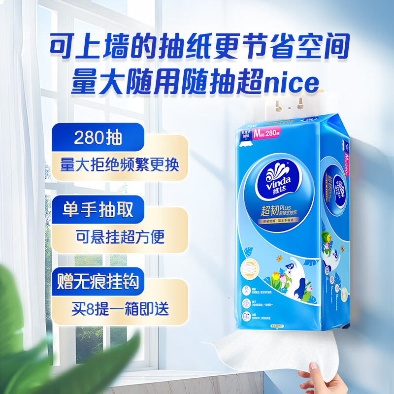 维达(Vinda)抽纸 超韧Plus挂抽3层280抽*8提M码 悬挂式猫咪款纸巾整箱