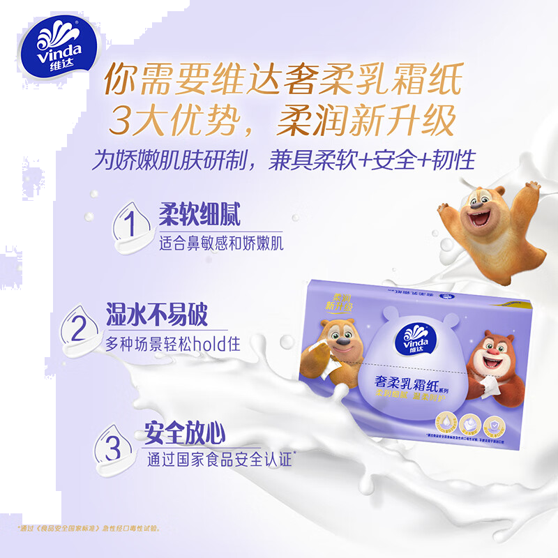 维达(Vinda)抽纸 保湿纸3层40抽*5包 乳霜纸保湿纸巾云柔巾 婴儿纸巾