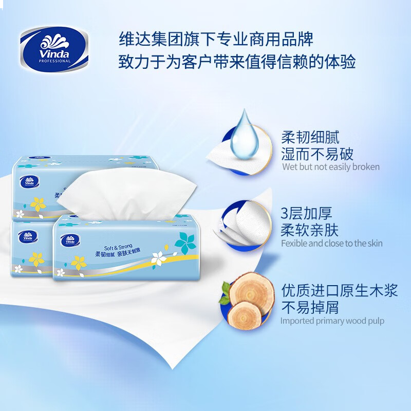 维达抽纸3层120抽*10包M码 客厅办公室酒店擦手天然无香