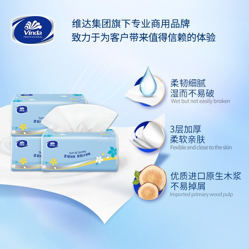 维达抽纸3层140抽*20包S码 客厅办公室酒店天然无香软抽 (整箱销售)