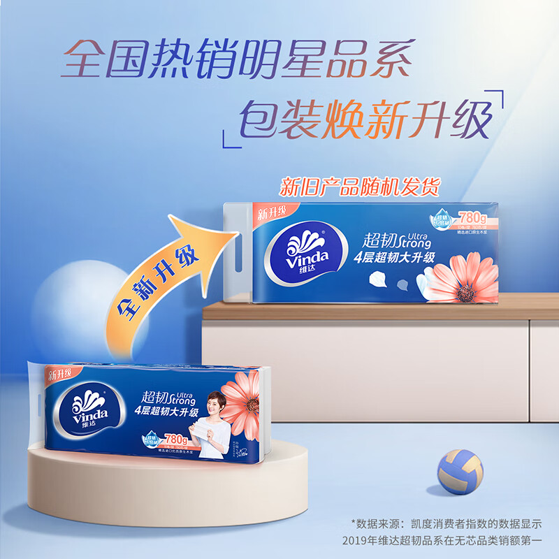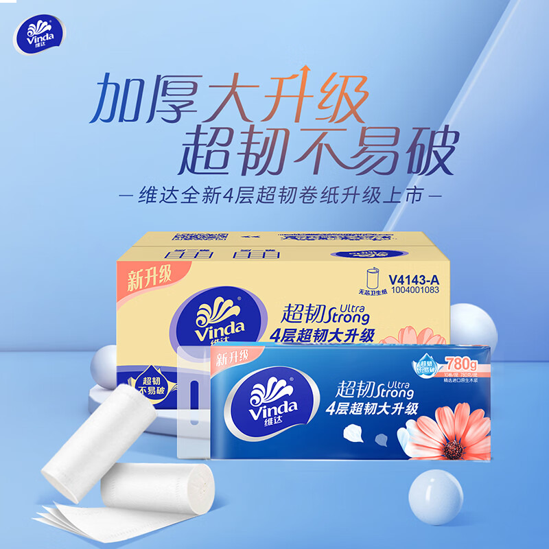 维达(Vinda)无芯卷纸 超韧4层78克*30卷 加厚升级 卫生纸厕纸卷筒纸纸巾整箱