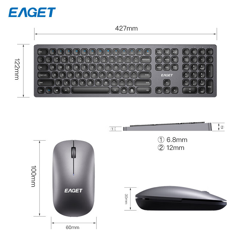 忆捷(EAGET)TYPE-C充电无线键盘鼠标套装静音剪刀脚薄膜轻薄简约无线键鼠套装YT02