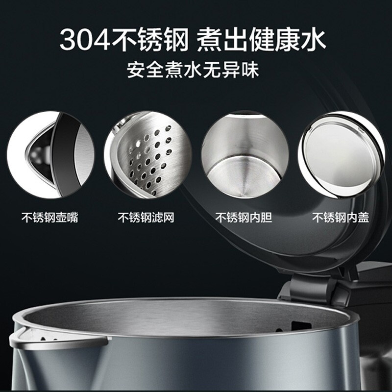 苏泊尔(SUPOR)电水壶1.7L烧水壶炫酷彩钢双层防烫保温电热水壶烧水壶 全钢无缝内胆 1800W大功率 1.7L