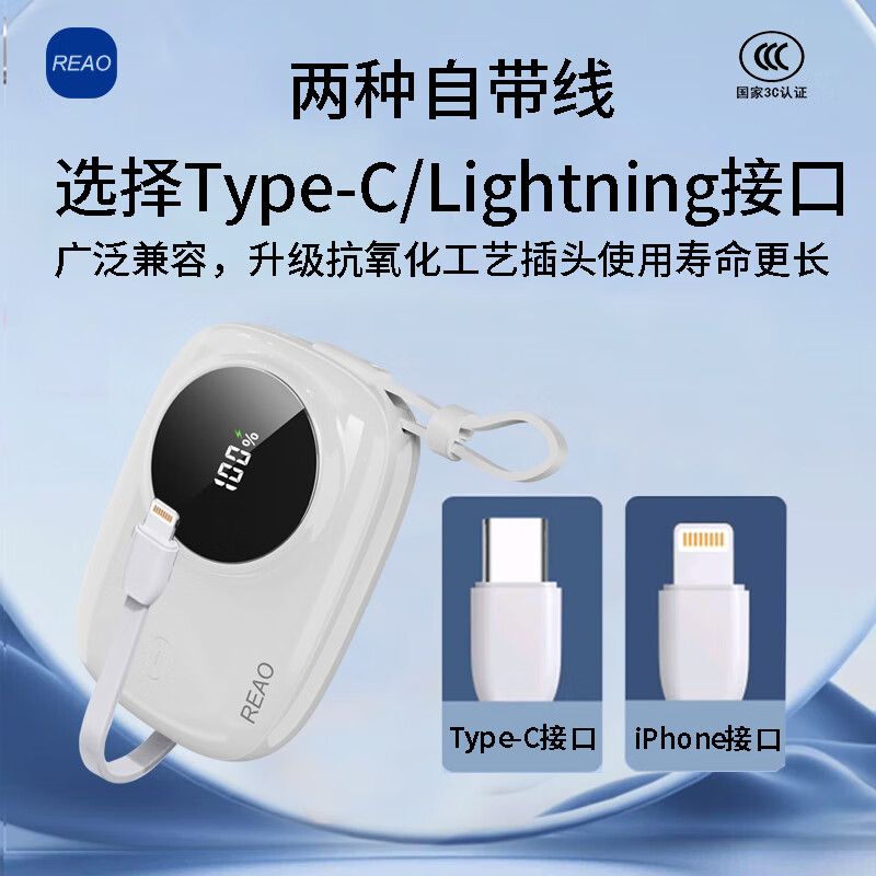 REAO泺澳充电宝移动电源迷你自带双线快充流量系列C13