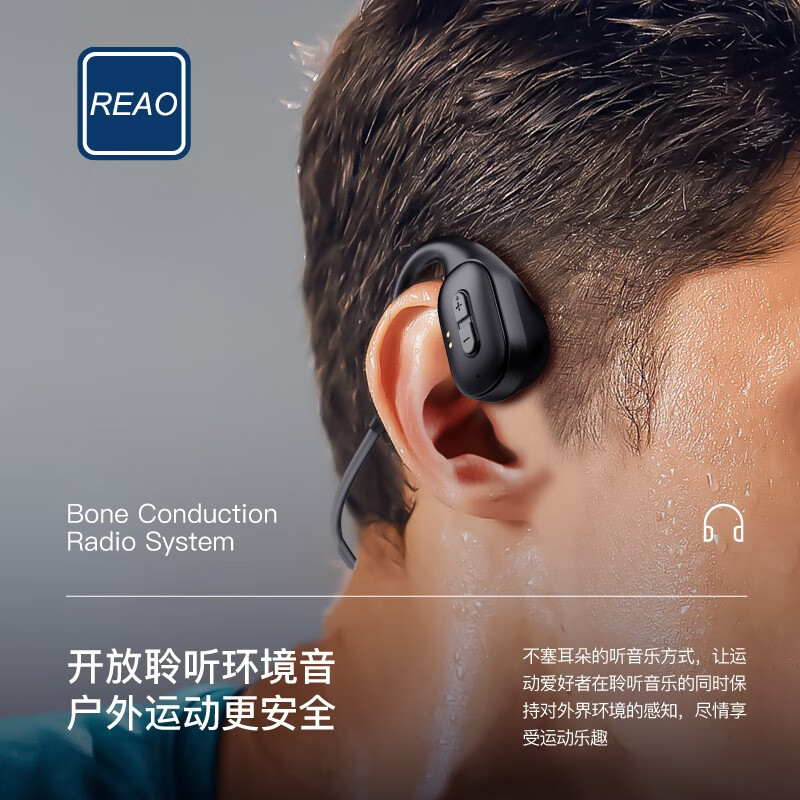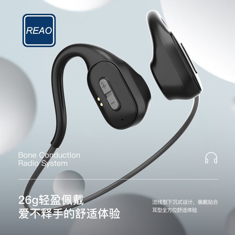 REAO乐奥Y35骨传导无线耳机蓝牙耳机运动耳机 黑色