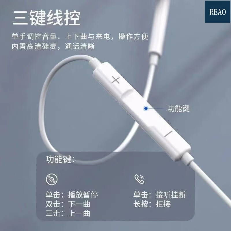 REAO乐奥M3线控耳机TYPE-C耳机音乐耳机通话耳机适用于TYPE-C口手机 白色