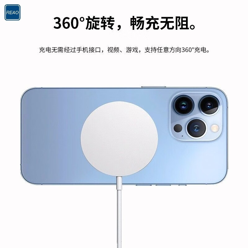 REAO乐奥W3磁吸无线充电器15W快充适用于苹果8-15系列手机磁吸充电器 浅灰色
