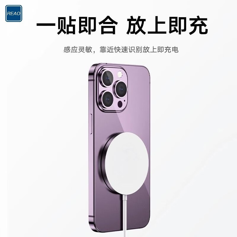 首页/ REAO乐奥W3磁吸无线充电器15W快充适用于苹果8-15系列手机磁吸充电器 浅灰色/